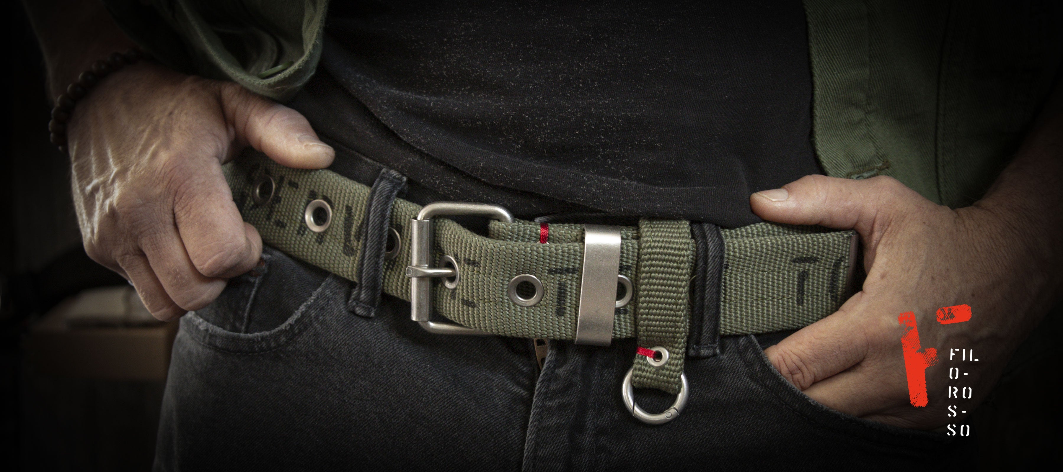 All our materials come from large lots of previously used goods. Our first material was dead stock denim for face masks and we are now using authentic retired fire hose to make belts and accessories.