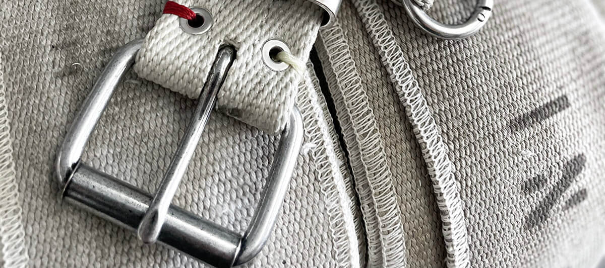 All our materials come from large lots of previously used goods. Our first material was dead stock denim for face masks and we are now using authentic retired fire hose to make belts and accessories.