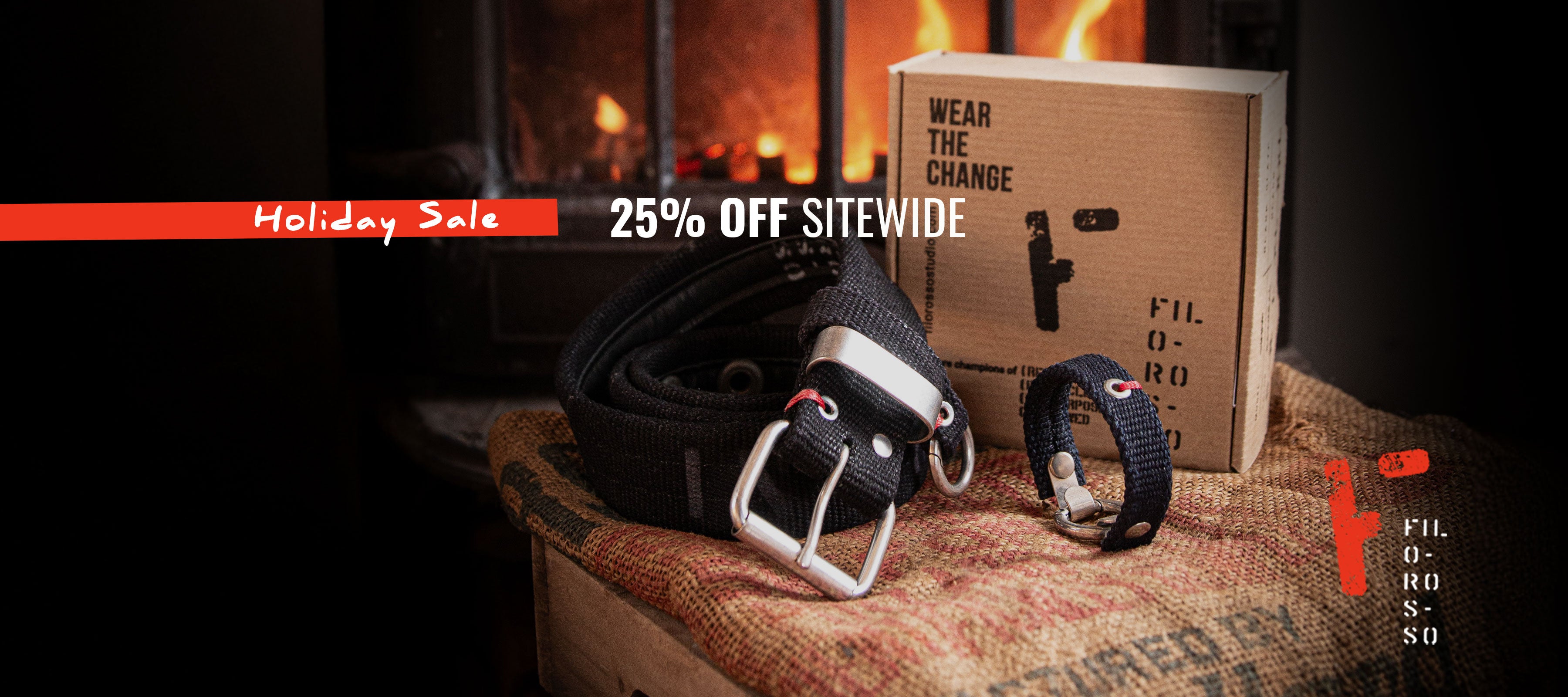 All our materials come from large lots of previously used goods. Our first material was dead stock denim for face masks and we are now using authentic retired fire hose to make belts and accessories.