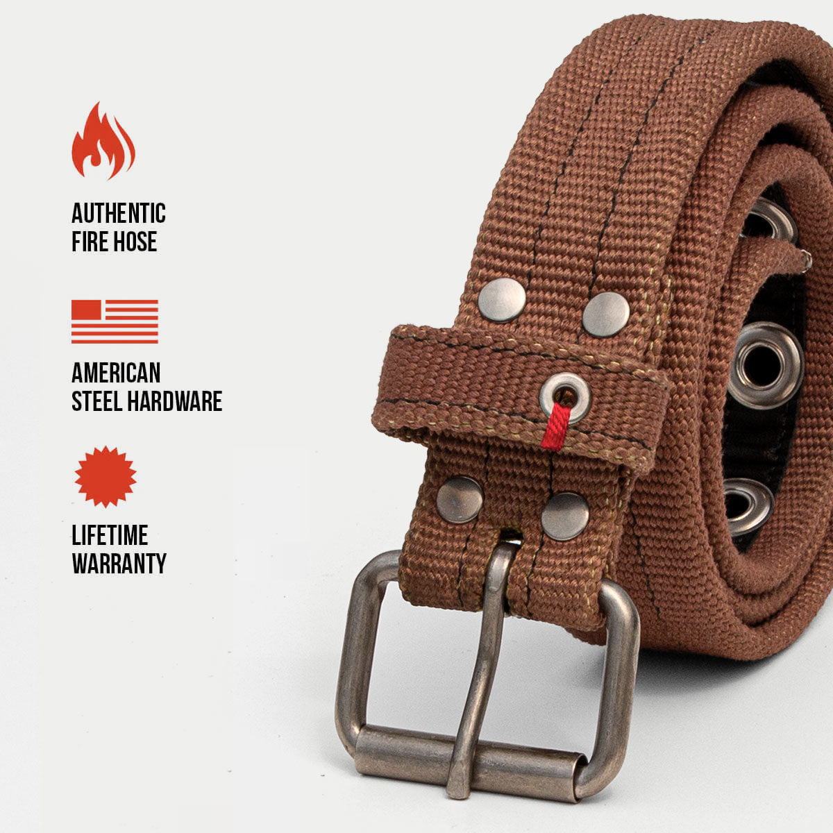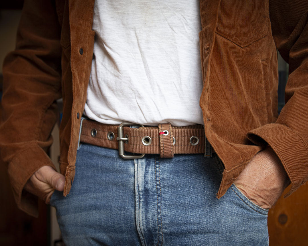 Our belts are upcycled and repurposed fire hose.