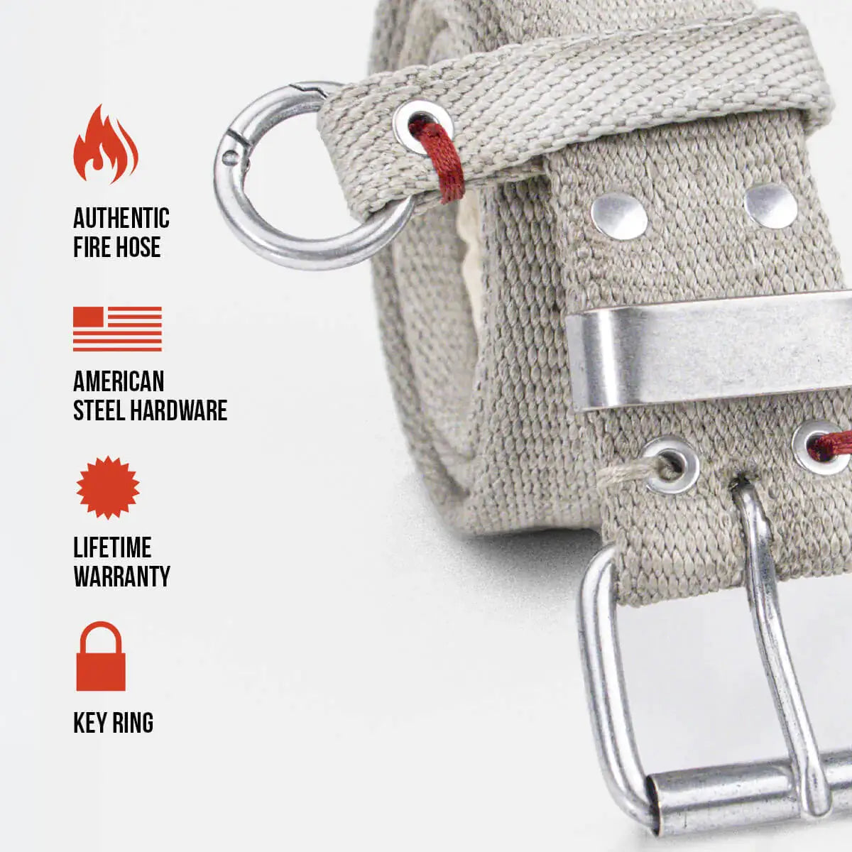 The In The USA belt carries the dignity and courage that is displayed everyday by the men and women firefighters of the United States. Featuring American Steel hardware finish and a removable key ring.